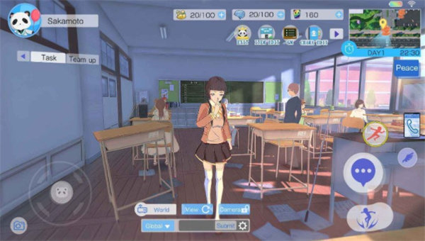 1、玩家可以自由体验这款游戏作品,在校园场景中开展自己的学习和生活。
