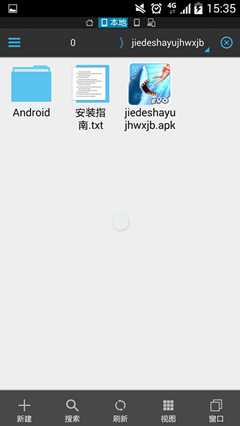 第一步:文件准备好后先安装APK文件。安装完成进入游戏,会发现游戏界面一直卡住没有反应。不用着急,这一步的作用是让游戏在Android→obb文件夹中创建对应的游戏目录(这一步非常关键),之后退出游戏即可。
