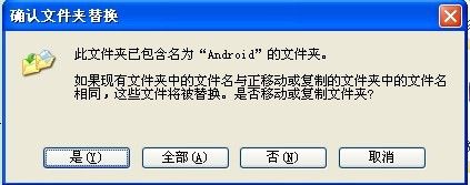 上图里的com.XXXX.XXXX就是一个个数据包文件。考虑到这个文件路径查找起来比较麻烦,我们站点的数据包已经预先配置好了路径,所以粘贴时可能会弹出是否覆盖的提示,直接选择全部覆盖就行——因为覆盖的只是Android目录下的data、obb这类文件夹本身,不会影响里面存放的其他文件,大家可以放心复制。