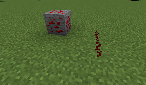 如图片呈现,左侧的矿物为红石矿,开采后能得到若干红石。当把红石放置在地面上,便会形成红石线路。需留意,开采红石矿时会出现自然发亮的情况,无需慌张。另外,开采红石矿所使用的工具最低应为铁质工具。