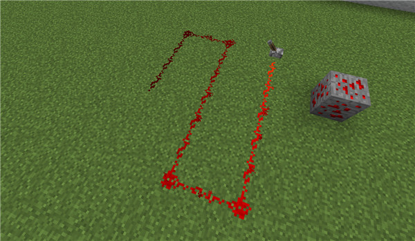 红石线路存在激活与未激活这两种状态。当红石处于激活状态时,能够激活部分红石机关;而处于未激活状态的红石,可借助能发出红石信号的方块来充能,进而实现激活。就像图中展示的那样,一个开启的开关能够为红石线路充能(红石变亮即为激活的标志)。