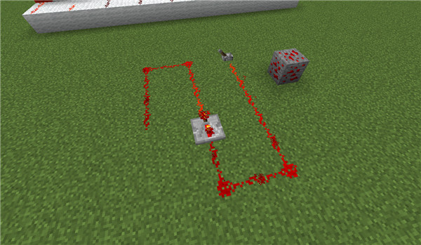 如图所示,与红石线相连的是我们要介绍的红石信号发生源。
