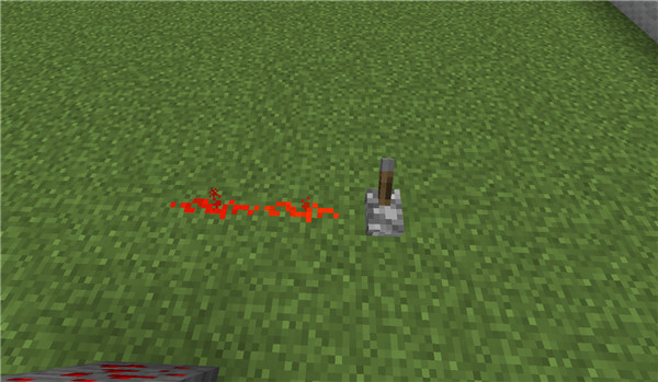 如图所示,第一个方块为开关,开关有两种状态,一般把手向上为关闭,向下为开启,开启状态下的开关可以为红石线路提供满格的信号。