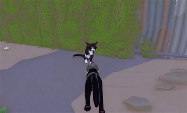 4、看到一个猫咪,走过去。