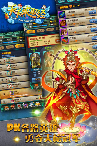 天天来取经,凭借全新策略玩法开启全民取经之旅,游戏收录了最完整的西游角色,打造出数百张精致卡牌,搭配华丽特效与感人剧情,共同演绎全新的西游故事。采用极致Q版画风,玩家可挑战上古神兽,众多名著英雄汇聚于此,各路豪杰相互竞技,究竟谁能勇夺天榜冠军?