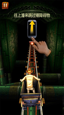 2、你驾驶着小矿车在轨道上飞驰,能坚持多长时间呢?滑动手指,让小矿车跃动起来,收集更多宝藏吧。