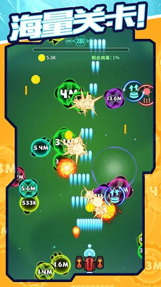 操作技巧:保持稳定的输出,尽量避免被病毒击中,每清理一波病毒后,及时收集掉落的金币。利用“连击”和“暴击”效果,进一步提升金币收益。
