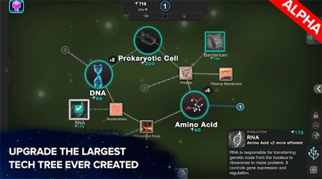 2.轻松点击创造进化财富,积累基因点,解锁并创造独一无二的新物种