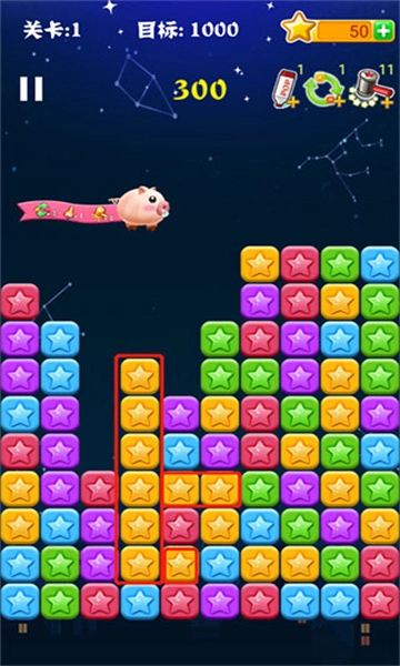 星星消除的规则是至少2个才能清理。2个星星消除仅得20分,这是基础分,获取容易,但初玩第一关时若只靠2个星星消除,很难满足过关条件。3个星星消除得45分,比两次2个星星消除的总分更高,不过仍难以达成高分过关要求,这时就需要尝试消除4个星星,能得80分——第一关大概消除14次4个星星就能过关。当然,前期还是建议尽量多积累分数,这对后续关卡会有帮助。