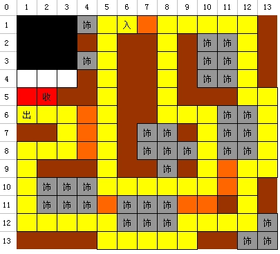 用法和移动图标相同,点击一下选中的货架(包括可装饰品)就会顺时针转动90度。前面介绍了部分控件的基础功能,接下来聊聊路径相关的内容。这里说的路径,指的是进口到收银台之间连贯的通道。即便在您进行装潢操作时,系统也会实时检测这条通道是否完整,并且会自动计算出一条距离最短的通道作为参考。您可以利用这些信息来完成路径设置——要是觉得系统提供的路径不符合需求,只需移动货架堵住当前显示通道的任意位置,此时系统会有两种反馈:一是提示不存在能让顾客从进口走到收银台的完整路径;二是根据您当前的布置重新生成一条参考路径。当然,我们最终还是要通过反复调整,来得到既符合自身需求又能被系统认可的路径。等路径确定后,再检查一下各个货架是否带有感叹号提示。