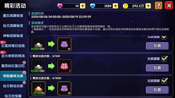 第一:我的勇者的活动页可以换取材料, 建议只换极晶,因为普通的能打到,白色粉尘想换就都换了吧,应该没啥影响,反正多的是