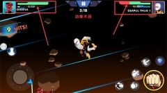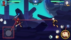 2、借助左侧的虚拟摇杆操控角色移动,点击右侧的攻击按钮来发动攻击,与此同时还能按下技能按钮释放技能,从而与敌人“DEAPULTHUG1”进行对战。