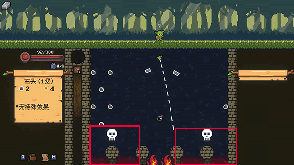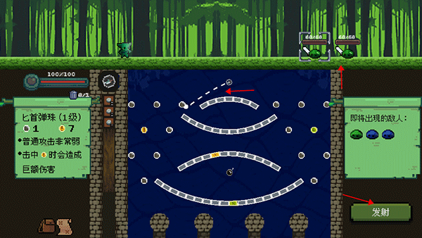 6、领取完奖励后,进入下一关的方式同样是借助弹珠,中间的火炬无法穿越,触碰还会扣除血量,我们需要选择左侧或右侧的入口进入。