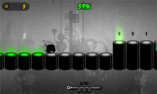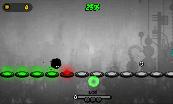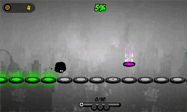 1、操纵你的小黑球不断进行跳跃,越过那些障碍物等东西,直达终点。