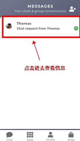 2. 首位关键人物Thomas会自动添加为好友,请务必查看他发送的聊天信息。