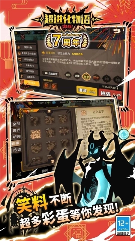 3、超进化物语闯关、炼狱、无限等多个模式供你选择,不断终极进化,完成更多华丽冒险;