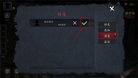 5、好友接收到邀请后,点击绿色的勾号以同意邀请。