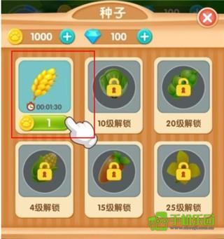 3、接着进入熊熊乐园,点击拾取农产物,然后选择种子,播种到土地里,并给农产物浇水。