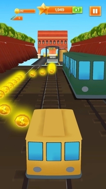 游戏的场景设定在地铁轨道之上,玩家所扮演的角色要躲避列车、障碍物以及追捕者,与此同时还要尽可能多地收集金币与各类道具。