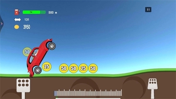 4. 凭借高超的操作技巧,能够使车辆前轮离地腾空,从而触及更高位置的金币并完成收集。