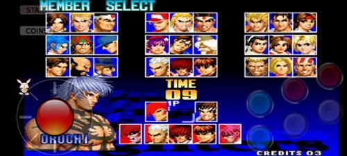 1、先安装本站提供的拳皇97手机版游戏,完成投币操作后确认开始游戏,接着挑选我们喜爱的英雄角色。