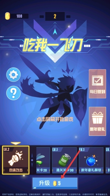 4、返回主界面,消耗金币点击升级,提升武器或技能等级,增强战力,挑战更高关卡。